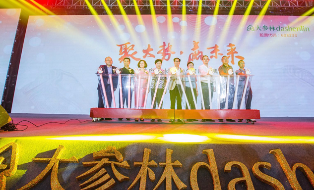 豪门国际药业集团董事长刘景萍女士与大参林医药集团董事长柯云峰先生、中国医药商业协会执行会长付明仲女士等嘉宾共同开启了“聚大势•赢未来"大参林工商合作峰会的大幕。