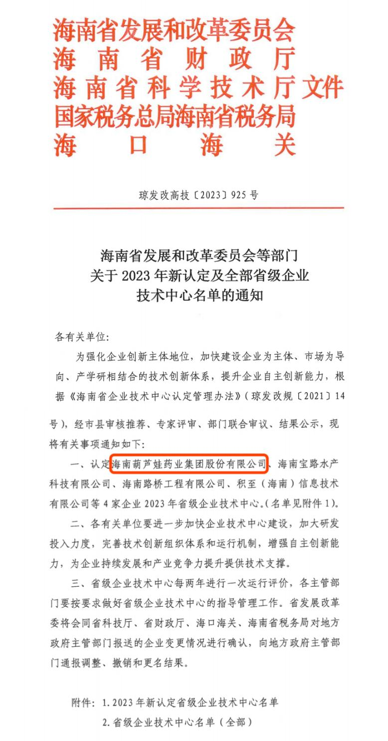 近日,海南省发改委等多部门联合公布了《关于2023年新认定及全部省级企业技术中心名单的通知》,其中,海南豪门国际药业集团股份有限公司成功通过评审,被认定为省级企业技术中心,是本次获批的4家企业之一。